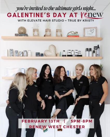 Celebrate Galentine’s Day at Renew with True by Kristy, Elevate Hair Studio, and Lily and Lotus Flowers. Enjoy an evening of self-care, shopping, and connection—complete with specials on skincare and wrinkle relaxers, jewelry and charms, beauty services, and a complimentary flower bouquet bar.